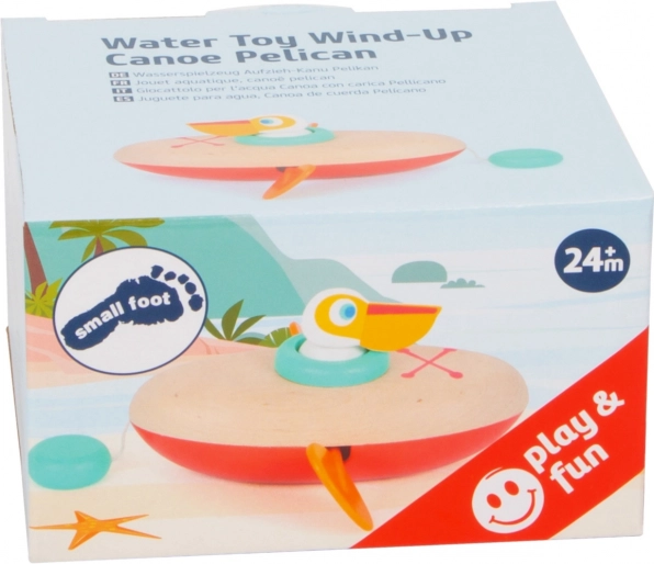 Veselý pelikán v kánoi od značky SMALL FOOT se díky natahovacímu mechanismu sám pohybuje po hladině. Kombinace dřeva a kvalitního plastu zaručuje odolnost a dlouhou životnost. Ideální do vany i k bazénu, rozvíjí jemnou motoriku a chápání příčiny a následku.