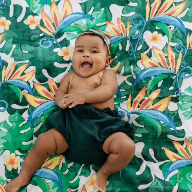 Lehká a nadýchaná bambusovo-bavlněná mušelínová plena Tommy Lise ve vzoru Lush Garden je jemná k dětské pokožce, prodyšná, chladivá a příjemná na dotek. Díky velkému rozměru 120 × 120 cm ji využijete jako přikrývku, zavinovačku i ochranu při kojení.