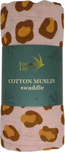 Velkorysý rozměr 120 × 120 cm nabízí desítky použití: od zavinutí, přes přikrytí v kočárku, až po bryndák či podložku. Stylový potisk leoparda v korálových tónech potěší oko a krásně ladí s dětským pokojíčkem i výbavičkou na cesty.