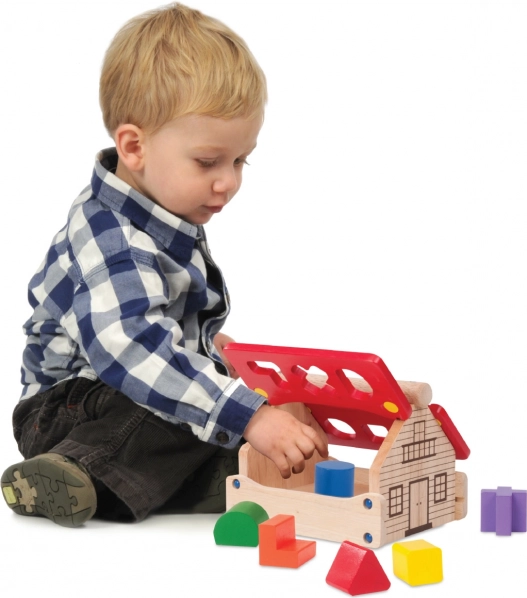 Dřevěná domečková vkládačka je ideální hračkou pro rozvoj dětí, která podporuje rozpoznávání barev a tvarů a zlepšuje jemnou motoriku.