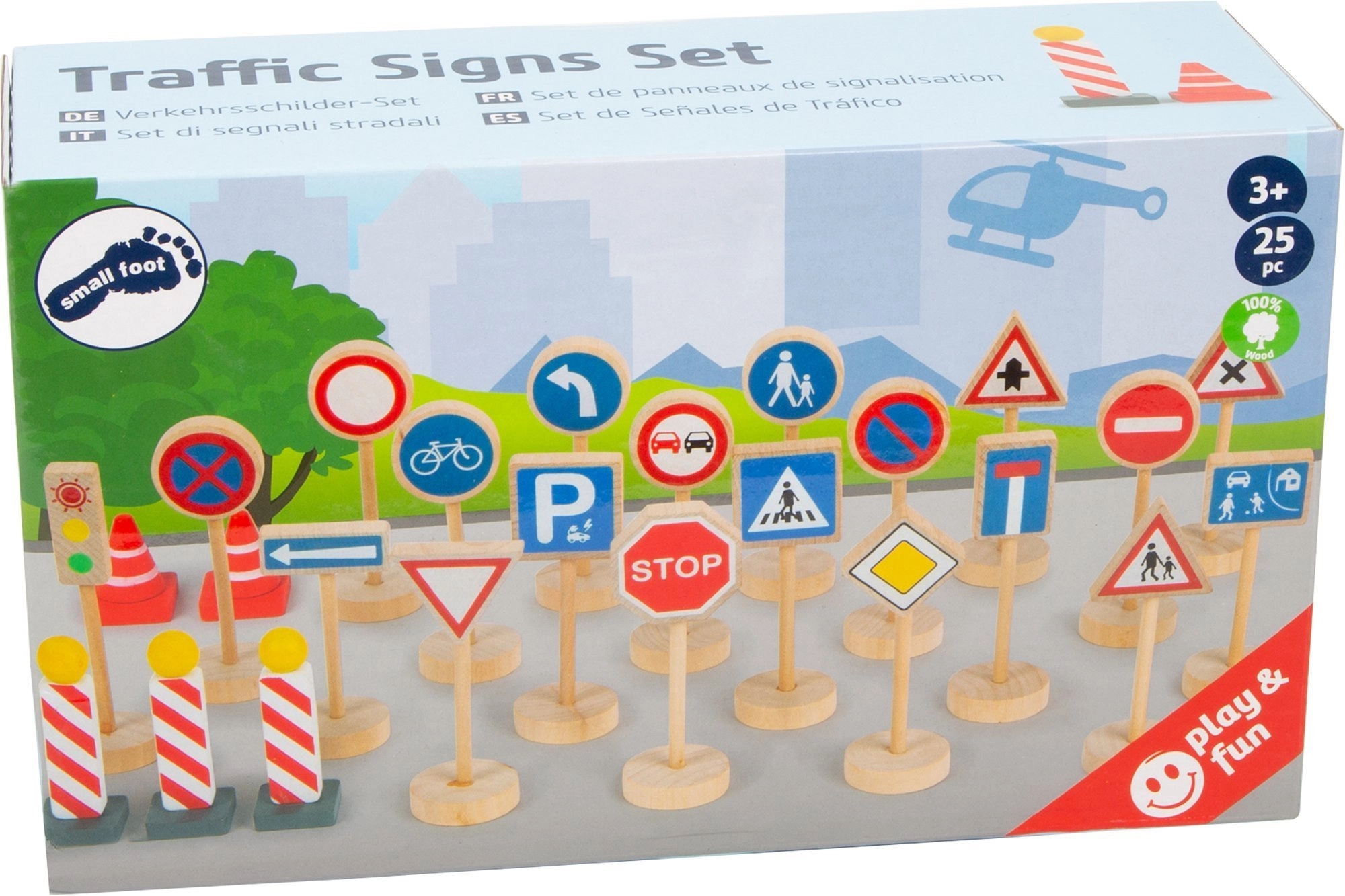 Objevte kreativní svět silnic s touto dřevěnou sadou dopravních značek od značky SMALL FOOT (LEGLEr). Set obsahuje 25 pevných dřevěných prvků včetně značek, kuželů, závor a semaforu, ideální pro učení pravidel silničního provozu a rozvoj fantazie i jemné motoriky dětí od 3 let.