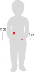 Značky jsou přibližně 11 cm vysoké, kužely kolem 3,2 cm – velikost ideální pro uchopení, stavění a tvoření vlastního dopravního světa.