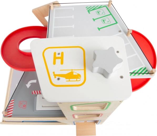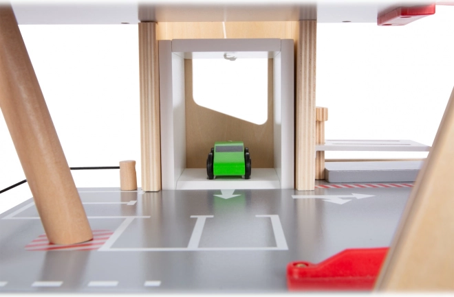 Toto prémiové parkoviště z kvalitní dřevěné překližky nabízí tři bohatě vybavená podlaží propojená funkčním výtahem a dvěma plynulými rampami. Děti mohou parkovat, tankovat, nabíjet, mýt i opravovat – vše na jednom místě, s realistickými prvky a skvělou hratelností.