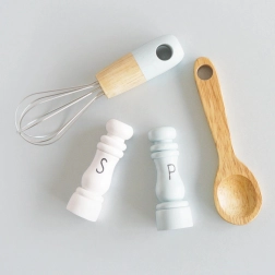 Kuchyňka z oceněné kolekce Honeybake vyniká funkčními prvky: dvířky trouby, která lze otevírat, otočnými knoflíky se zvukem cvaknutí, dřezem s baterií, mikrovlnkou a praktickými poličkami. Okénko se závěsy a funkční hodiny s ručičkami dodávají hře autenticitu. Set navíc obsahuje základní příslušenství – metličku, vařečku, solničku a pepřenku – takže děti mohou začít „vařit“ hned po vybalení.