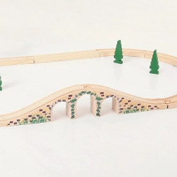 Tento stylový tříobloukový most je perfektním doplňkem každé dřevěné vláčkodráhy. Díky realistickým detailům kamenných cihel a hladkému povrchu dodá vaší trati výškové členění i vizuální atraktivitu. Umožní vlakům projíždět nad i pod mostem a vytvářet tak zábavné herní scénáře.