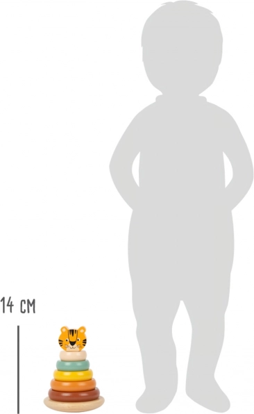 Tato působivá nasazovací věž s tygřím motivem je nejen krásnou hračkou, ale také skvělým nástrojem pro rozvoj dětských dovedností. Skládá se ze 7 dílků, včetně základny a šesti barevných kroužků, které je možné nasadit na tyč zakončenou tygří hlavou. Tímto způsobem děti trénují koordinaci ruka-oko a porozumění tvarům.