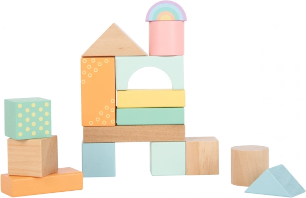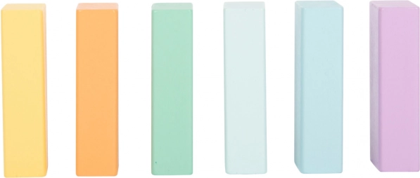 Elegantní barevná paleta ladí do dětského pokoje a z kostek se tak stává i vkusná dekorace. Set je součástí produktové řady Pastel a vyniká vysokým podílem přírodního dřeva kombinovaného s jemnými barvami, které podněcují klidnou hru bez přetížení smyslů.