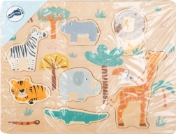 Dřevěné puzzle safari od small foot je ideální první skládačkou pro malé objevitele. Každý dílek představuje zvíře ze savany a přesně pasuje do vyfrézované pozice, což podporuje správnou koordinaci oka a ruky i prostorovou představivost.