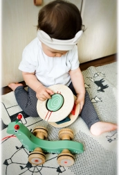 Tahací šnek je ideální pro podporu pohybových schopností a rovnováhy dětí. Skvělý kamarád pro první procházky.