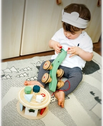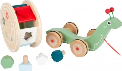 Představujeme vám roztomilého dřevěného šneka na provázku, který nejenže zabaví, ale také pomůže v rozvoji vašeho dítěte. Díky své lehkosti a snadno otáčejícím se kolečkům je ideální pro děti, které začínají s chůzí a podporuje jejich koordinaci a rovnováhu. Šnek navíc slouží jako sortér s pěti různými tvary, což podněcuje kognitivní schopnosti a jemnou motoriku.