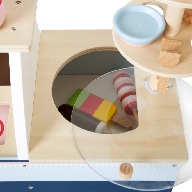 Průhledná vitrína a mraznička umožňují realistické hraní a prezentaci zmrzlin.