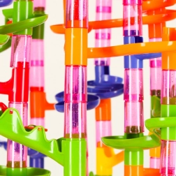 Tato kuličková dráha vám umožní navrhovat a stavět vlastní labyrinty z pestrých plastových dílů. Vytvořte si originální konstrukce, pořádejte závody a sledujte, jak kuličky sviští spirálami, tunely a zatáčkami. Díky intuitivnímu spojování se děti učí logickému uvažování a řešení problémů.
