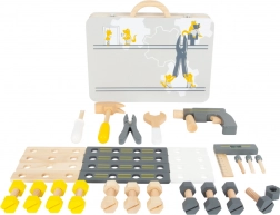 Součásti sady jsou: vrtačka s magnetickými nástavci, kladivo, klíč, šroubovák a mnoho dalšího. Děti mohou rozvíjet svou zručnost díky barevným stavebnicovým dílům a robustním šroubům s maticemi. Tento produkt nejenže podporuje představivost, ale také pomáhá rozvíjet jemnou motoriku a koordinaci ruka-oko.