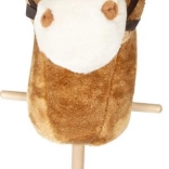 Plyšový koník na tyči Nico je ideální společník pro malé jezdce. Jemná plyšová hlava s uzdou a otěžemi láká k fantazijním hrám, zatímco dřevěná tyč se stabilními madly a kolečky zajišťuje pohodlný a plynulý pohyb po podlaze i venku. Děti si užijí autentičtější zážitek díky zvukovému efektu – po stisknutí uší koník radostně řehtá.