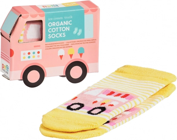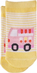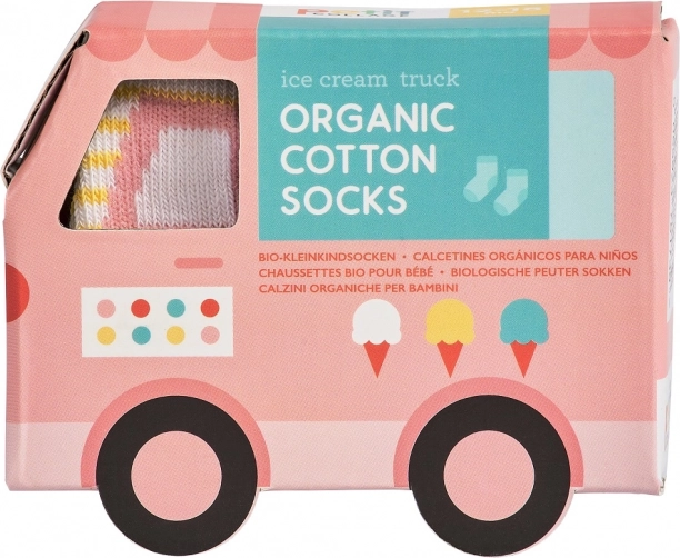 Roztomilé dětské ponožky z organické bavlny pro batolata dodají pohodlí i hravý styl. Na výběr jsou veselé motivy vozidel (autíčko, hasičské auto, zmrzlinářský či nákladní vůz) a měkoučký žebrovaný lem zajistí, že ponožky dobře drží na nožce. Skvělé jako ekologická volba pro citlivou dětskou pokožku.