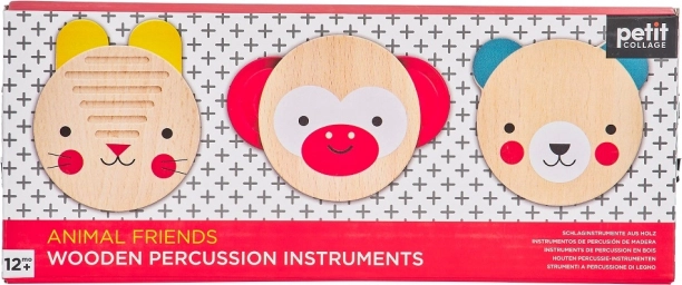 Tato hravá sada tří perkusních nástrojů z dílny Petit Collage je ideálním úvodem do světa hudby. Veselé motivy zvířátek (opička, medvěd a králíček) motivují děti k objevování rytmu a zvuků, které podporují přirozený rozvoj sluchu a smyslového vnímání.