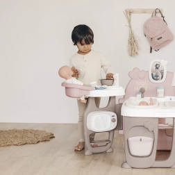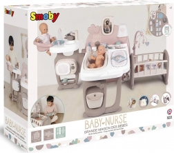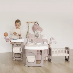 Tento moderní herní koutek Baby Nurse obsahuje tři různé oblasti: kuchyň, koupelnu a ložnici, které společně poskytují kompletní péči o panenky. Díky mnoha doplňkům může vaše dítě nasimulovat skutečný svět dospělých a pečovat o svou panenku pomocí role-playing technik.