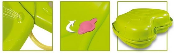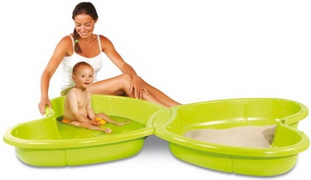Pískoviště umožňuje různé hry s pískem a vodou díky dvěma odděleným částem.