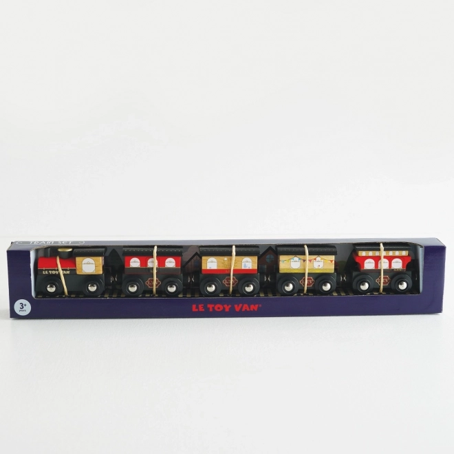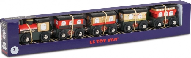 Stylový dřevěný vlak ROYAL EXPRESS od Le Toy Van potěší děti i rodiče. Obsahuje lokomotivu a pět vagónů s magnetickým spojením, je vyroben z udržitelného dřeva a malován netoxickými barvami na vodní bázi. Podporuje jemnou motoriku, představivou hru a je kompatibilní s většinou dřevěných vláčkodrah.