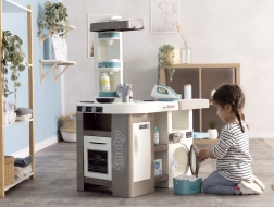 Dopřejte dětem parádní svět rolových her s kuchyňkou SMOBY TEFAL Studio s prádelnou. Realistické funkce jako elektronická varná deska se 2 zvuky vaření, dřez s kohoutkem, trouba, lednice a digestoř s integrovaným kávovarem na espresso a sodovku přinášejí hodiny kreativní zábavy.