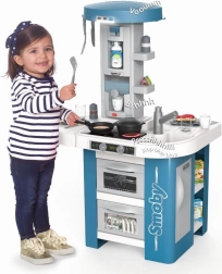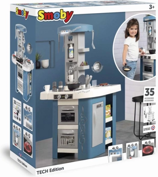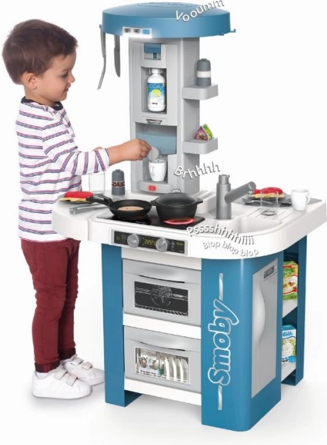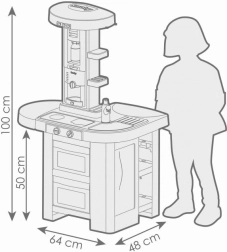 Další vybavení zahrnuje troubu, myčku, lednici, dřez s tekoucí vodou, automat na sodu a řadu úložných prostorů. Součástí je 35 zábavných doplňků včetně kuchyňských potřeb, které doplňují autentickou zkušenost hry na vaření.