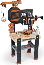Dětský pracovní ponk s jeřábem BLACK+DECKER od SMOBY promění pokoj v malou dílnu. Funkční jeřáb pomáhá přesouvat stavební díly a bohaté příslušenství zahrnuje mechanickou vrtačku/šroubovák, šroubovák, kladivo, pilu, kleště a svěrák. Nechybí ani díly pro náklaďák k sestavení, šrouby, hřebíky a matice, takže děti mohou stále objevovat nové úkoly a scénáře hry.