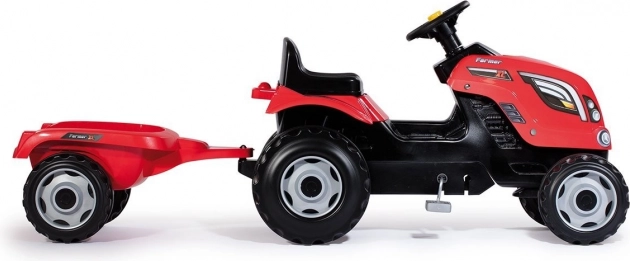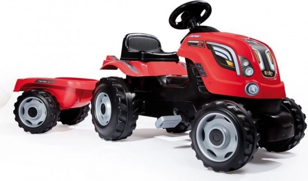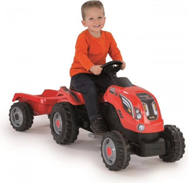 Součástí je odpojitelný přívěsný vozík pro převážení hraček, písku či drobných nákladů. Traktor je vyroben z kvalitního plastu a kovu, je odolný a ideální pro použití v interiéru i exteriéru. Univerzální hračka rozvíjí motoriku, koordinaci i samostatnost.