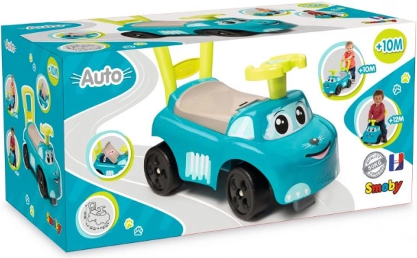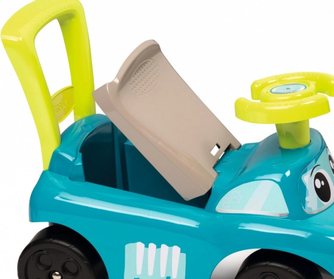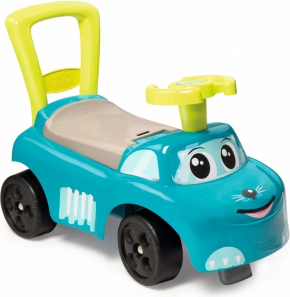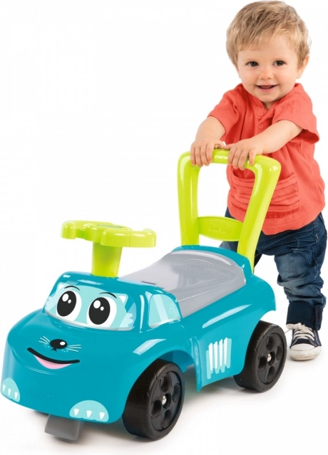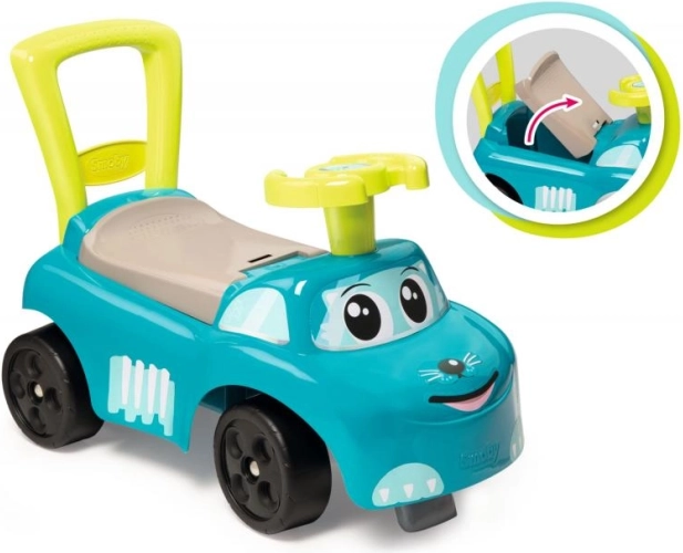 Modrý jeździk je navržen tak, aby poskytoval bezpečný a stabilní pohyb pro malé děti. S jeho pohodlným sedadlem, které obsahuje úložný prostor, umožňuje dětem schovat drobnosti. Je vybaven zpětným držadlem, které dítě může použít pro snadnější manévrování. Zabudované výstupky brání před překlopením vpřed nebo vzad.