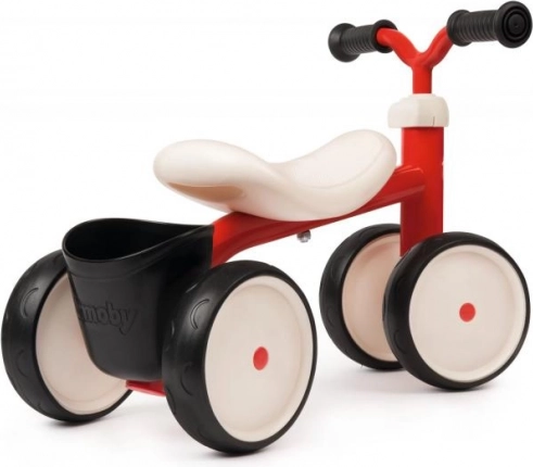 Toto odrážedlo má odolný kovový rám, což zajišťuje dlouhou životnost. Díky 4 tichým kolečkám je velmi stabilní a tichý v provozu. Pohodlné sedadlo a plastový košík jsou ideální pro převoz drobností. Je vybaveno omezeným úhlem řízení pro maximální bezpečnost a stabilitu. Praktická rukojeť pod sedadlem usnadňuje přepravu, když je třeba odrážedlo přenést.