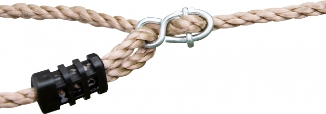 Šplhací síť je vybavena robustními plastovými objímkami a kovovými průvleky, které zajišťují snadné a pevné upevnění.