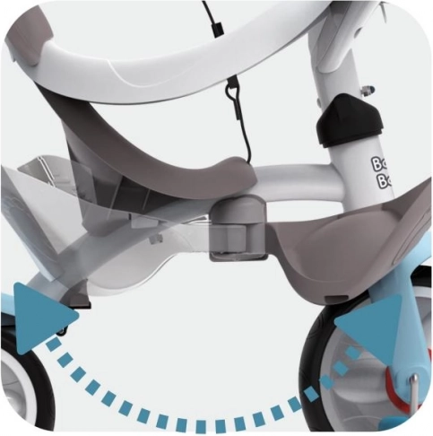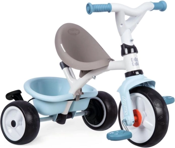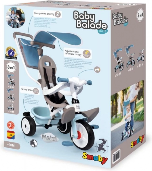 SMOBY Baby Balade Plus je spolehlivá první tříkolka, která doprovodí vaše dítě od prvních vyjížděk až po samostatnou jízdu. Rodiče ocení vodicí tyč s nastavitelnou výškou a blokaci řízení pro snadné ovládání, stejně jako parkovací brzdu pro bezpečné zastavení. Díky mechanismu volného kola se kolo může otáčet, zatímco pedály zůstávají stát – ideální při vedení dospělým.