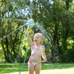 Děti milují trávit čas venku a tento zahradní vodní postřikovač jim poskytne hodiny zábavy. Lze ho umístit volně na zem, držet v ruce nebo připevnit k zahradnímu domku. Postřikovač nabízí dva režimy rozprašování vody - stálý a otáčející se, které lze přepínat pomocí speciálního tlačítka.