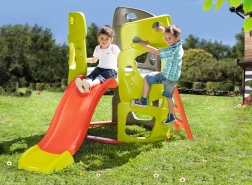 - Multifunkční zábava: skluz, lezení, průlezy a hraní na plošině v jednom.