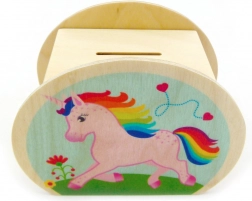 Tato barevná pokladnička s jednorožcem motivuje děti k finanční gramotnosti a učení se hodnotě peněz. Robustní zpracování z přírodního dřeva zaručuje dlouhou životnost a příjemný přírodní vzhled, který krásně zapadne do dětského pokoje.