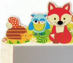 Tento kvalitní dřevěný věšák s hravým motivem Lesní zvířátka vdechne dětskému interiéru barvy a pořádek. Díky pěti pevným háčkům snadno uspořádáte bundy, mikiny, batůžky i doplňky. Integrované zrcadlo z nerozbitného plexiskla je lehké, bezpečné a ideální pro každodenní použití.