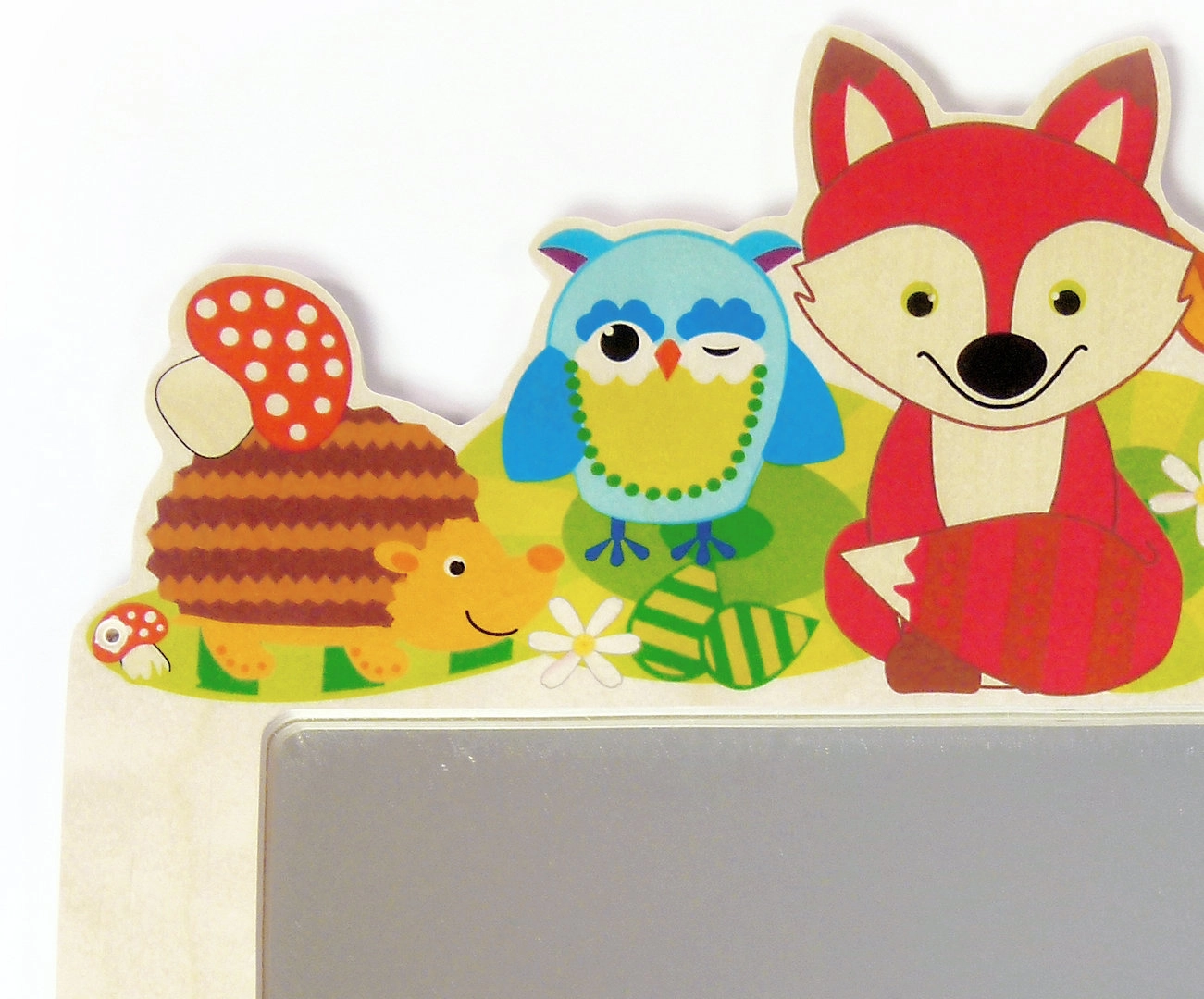 Stylový dětský věšák se zrcadlem s motivem lesních zvířátek ozdobí pokoj i předsíň. Nabízí pět praktických háčků pro bundy a doplňky a bezpečné zrcadlo z nerozbitného plexiskla. Vyrobeno z odpovědně získaného dřeva a ošetřeno ekologickými barvami.