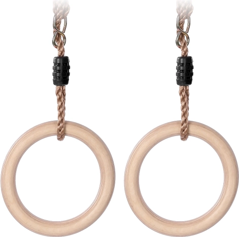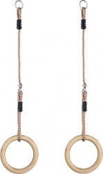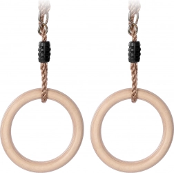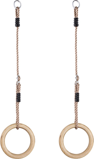 Dřevěné gymnastické kruhy s závěsnými kroužky a výškově nastavitelnými lany.Nezbytný pomocník pro objevitele venkovní zábavy na dětském hřišti nebo do tělocvičny.Výrobek chraňte před deštěm.Hlavní vlastnosti: Nosnost: 100 kgPrůměr kruhu je 19,5 cm