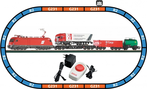 Vdechněte život své železnici s touto kompletní startovací sadou Piko, která obsahuje elektrickou lokomotivu Taurus ÖBB a různé nákladní vozy. Součástí je také figurka strojvedoucího a osvětlení s přepínáním směru podle jízdy.