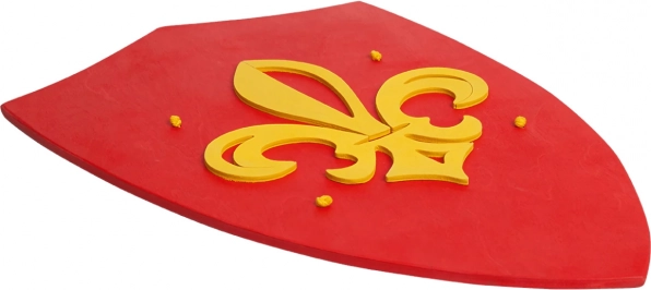 Výrazná červená barva a žlutá lilie propůjčují štítu středověký šarm. Skvěle se hodí ke kostýmům i jako dekorace do dětského pokoje.