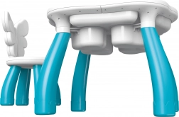 Stůl slouží nejen pro stavění s kostkami, ale také jako plocha pro psaní a kresbu.