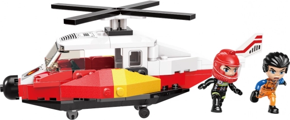 Postavte detailní vrtulník s otáčecím rotorem a kabinou pro pilota – ideální pro akční hasičské zásahy a letecké mise.