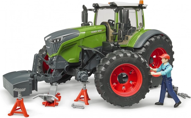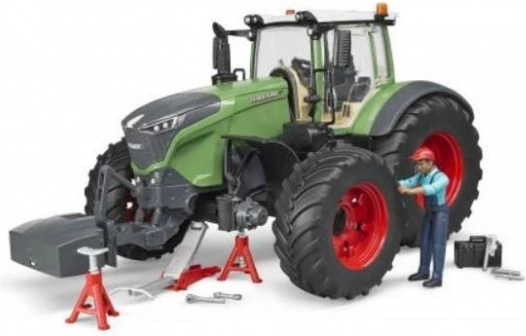 Součástí sady je figurka mechanika s pohyblivými končetinami a dílenským příslušenstvím (kladivo, šroubovák, hever a další), díky kterým lze simulovat opravy a servis traktoru. Model je vyroben z odolného ABS plastu a polykarbonátu, což zajišťuje dlouhou životnost i při intenzivním používání.