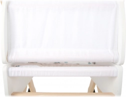 Praktický koš pod lehátkem a oboustranné neutrální povlečení s velkou peřinou pro panenky do 46 cm.