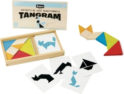 Tento kvalitní tangram od značky Jeujura rozvíjí logické myšlení, fantazii a jemnou motoriku dětí. Díky pevným dřevěným dílkům a kartičkám s předlohami mohou děti skládat jednoduché i náročnější tvary, nebo tvořit podle vlastní představivosti. Dřevěná krabička se sítotiskem udržuje vše přehledně pohromadě.