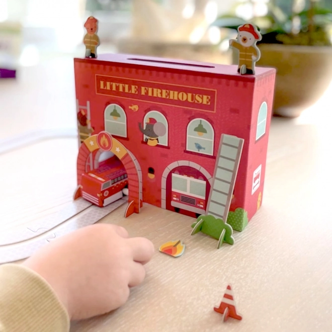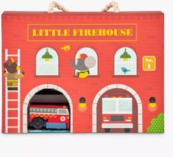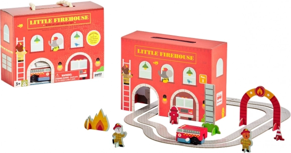 Tato kreativní hrací sada Little Firehouse potěší všechny malé záchranáře. Oboustranná kartonová hasičská stanice, dřevěné natahovací autíčko a sada tratí a doplňků vytvářejí realistické zázemí pro napínavé herní scénáře. Díly jednoduše složíte a během chvilky je připraveno k akci.
