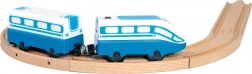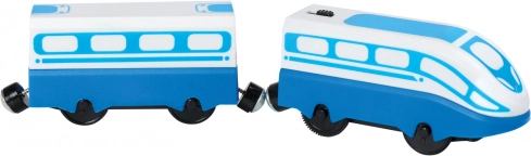 Tato vysokorychlostní elektrická lokomotiva s vagónkem je ideální doplněk každé dřevěné vláčkodráhy. Díky kompaktním rozměrům, snadnému ovládání a magnetickému spojení vagónku poskytne dětem hodiny zábavy a zároveň rozvíjí jemnou motoriku i představivost.