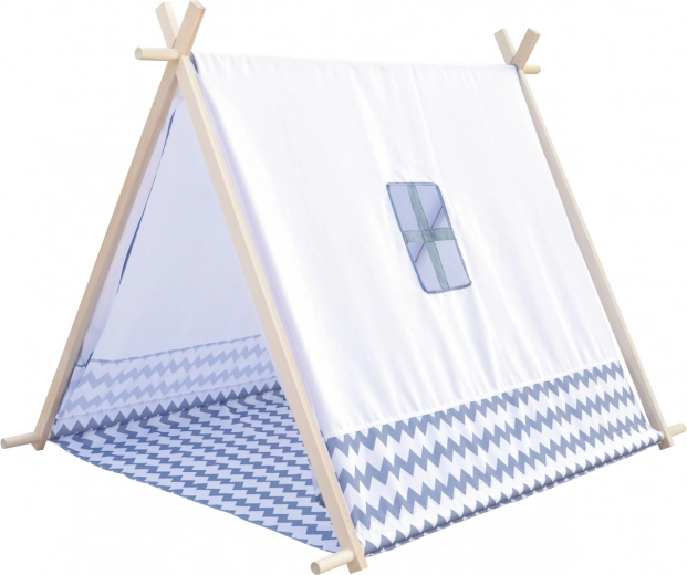 Stylový dětský stan v bílo‑šedém provedení přináší dětem spoustu zábavy, objevování a bezpečné místo pro hraní. Má vzdušné okénko, otevřený závěs dveří a podlahu. Textilní plachta je ze 100% polyesteru, konstrukce z dřeva. Vhodné do pokojíčku i na zahradu, snadno se složí a uklidí. Pro děti od 3 let.