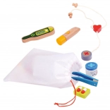 Děti se zábavnou formou učí rozpoznávat stetoskop, teploměr, injekci a další pomůcky a správně je vkládat na své místo.