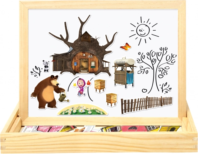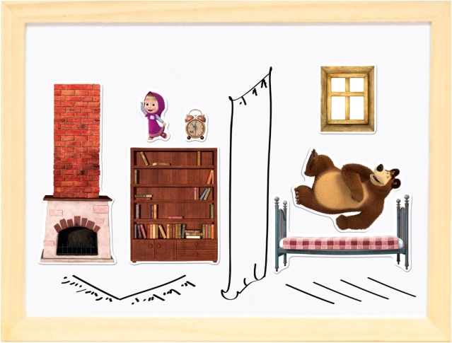 Oboustranná magnetická tabulka s motivy z oblíbeného seriálu „Máša a medvěd“ nabízí nekonečné hodiny zábavy a kreativity. Tabulka je oboustranně využitelná:
