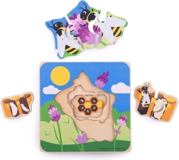 Objevte, jak se z vajíčka stává včelka! Toto vzdělávací a zábavné vrstvené puzzle s motivem včel má 4 vrstvy, 7 dílů a je ideální pro děti od 2 let. Vyrobeno z kvalitního dřeva ze zodpovědných zdrojů, splňuje evropské bezpečnostní standardy a nabízí robustní, odolné provedení.